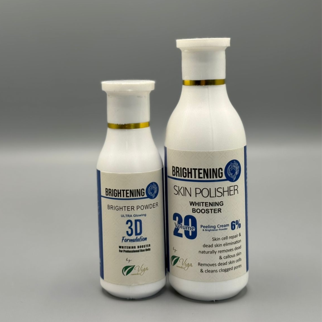 Unveil your natural glow with the Viya Brightening Skin Polisher, a premium blend of Blonder Powder and 20 Volume Developer designed to give your skin a polished, luminous finish. This innovative formula works by gently exfoliating dead skin cells, removing impurities, and refining texture to reveal a softer, brighter, and more radiant complexion.